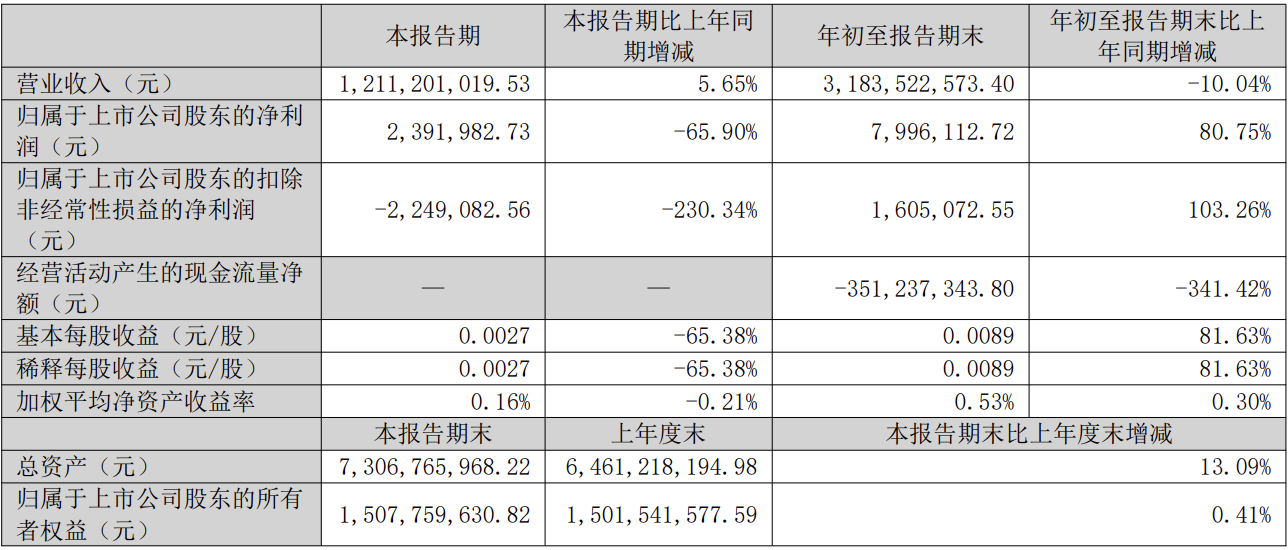 前三季度,公司实现营业收入约318.35亿元,同比下降10.04%;归属于上市公司股东的净利润达799.6万元,同比大幅增长80.75%;扣除非经常性损益后的净利润为160.5万元,同比增长超过103.26%。
