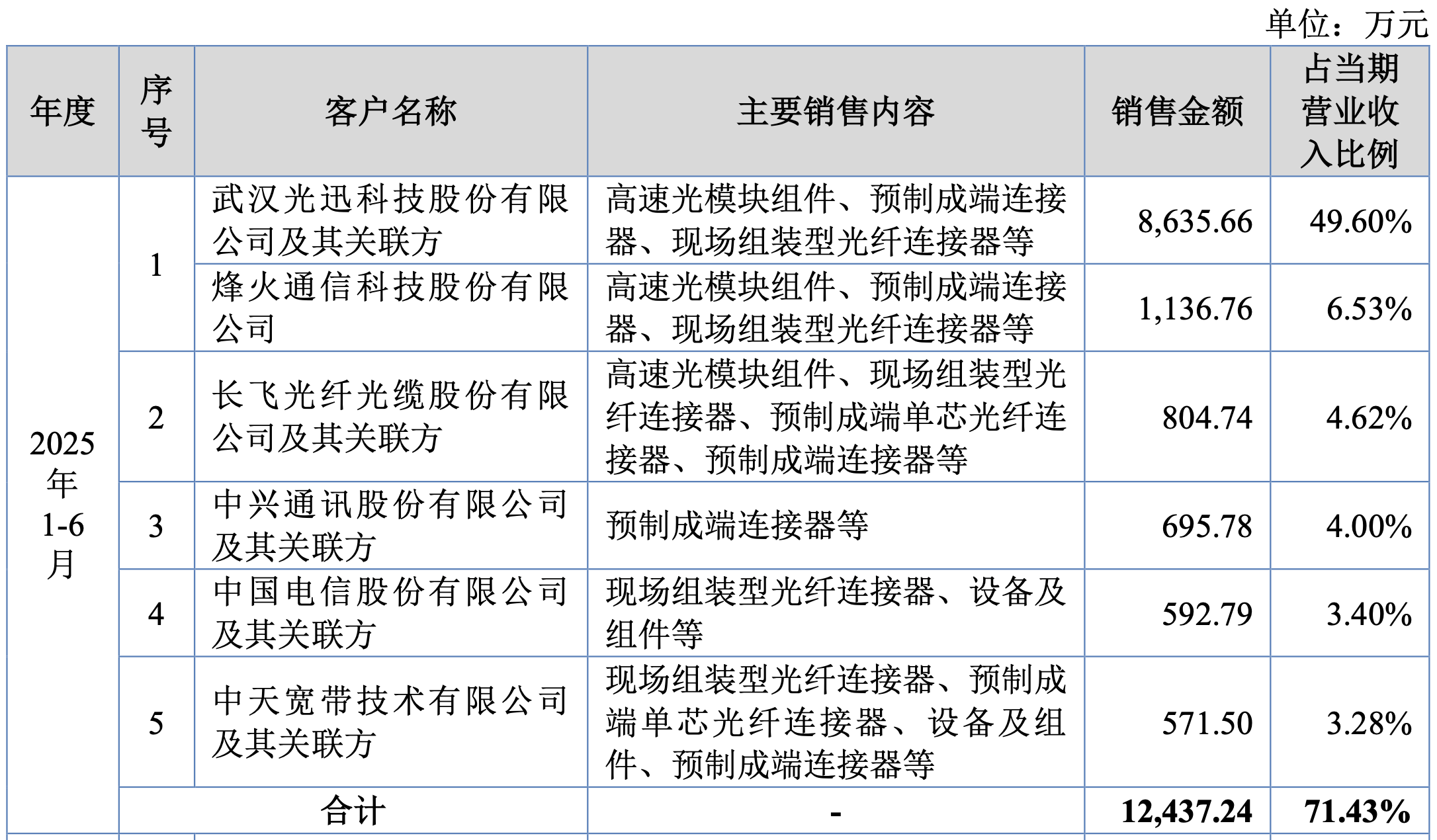 值得一提的是,公司前五大客户销售占比逐年提高,到2025年上半年,宇特光电前五大客户销售占总销售比重为71.43%,其中第一大客户光迅科技销售额8636万元,占当期销售总额的比例接近50%。