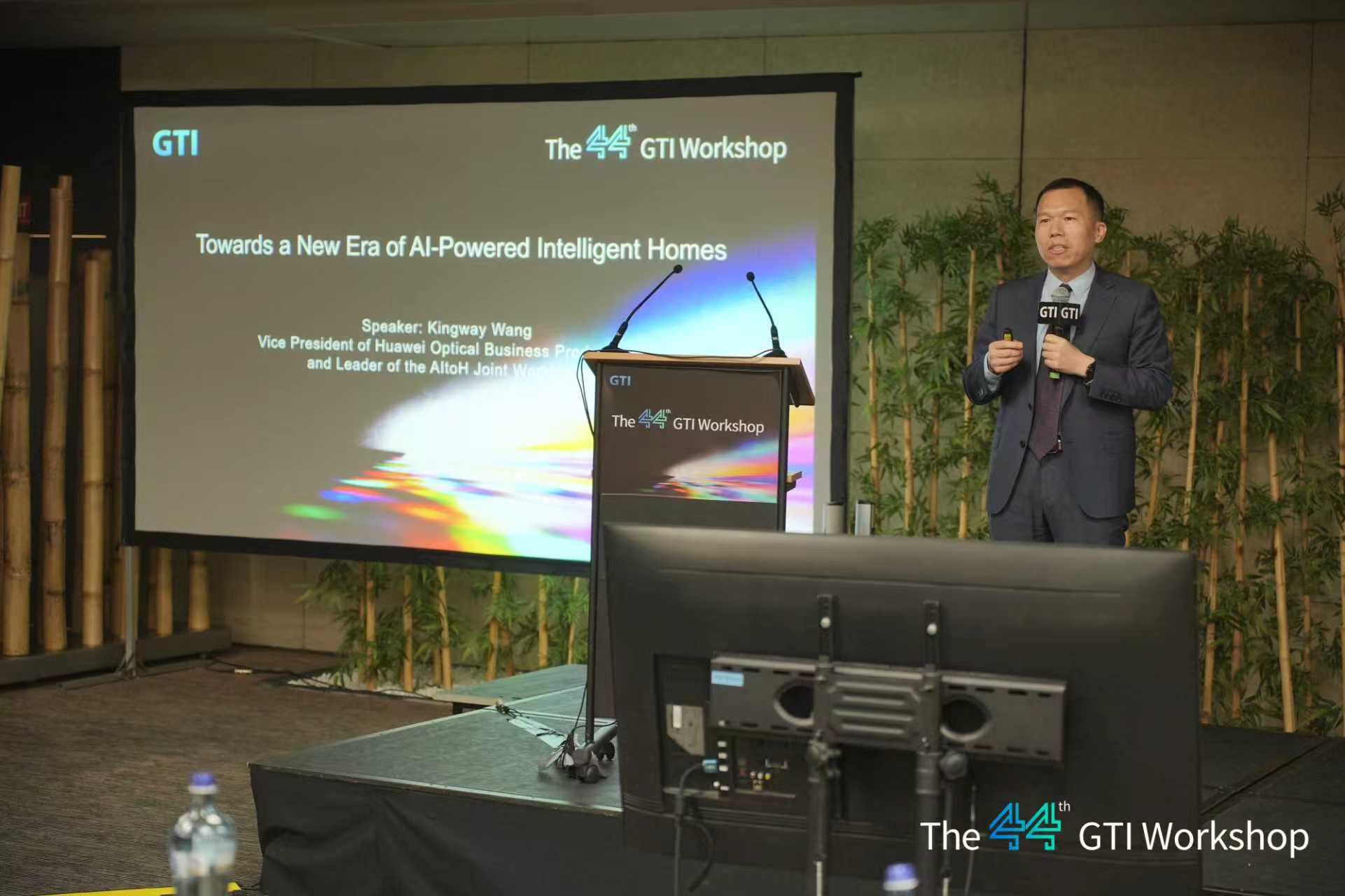 在全球GTI第44次研讨会的数智生活分论坛上,华为光产品线副总裁王金辉发表《迈向以AI为纽带的智能家庭新纪元》主题演讲,提出AI正重塑智能家庭愿景,呼吁运营商要抓住这个机遇,并提出“一根纤·一张网·一个家”演进路线,建议运营商通过一根纤和一张网打造好家庭宽窄带网络,把握家庭AI服务入口,发挥云网端优势,实现从宽带联接的提供者向AI智能家庭服务商的转型,并倡议产业界通过三大举措,共建AItoH智能家庭生态,助力家庭智能业务繁荣。