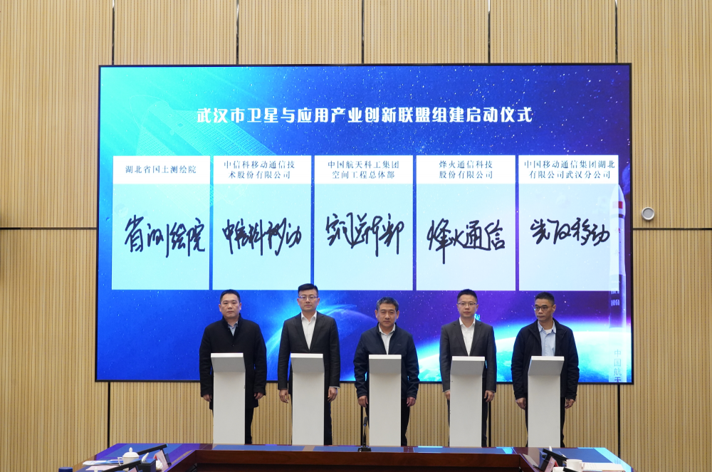 对接会上,由中信科移动联合中国航天科工集团空间工程总体部、烽火通信科技股份有限公司、湖北省国土测绘院、湖北移动通信有限责任公司武汉分公司共同发起成立的“武汉市卫星与应用产业创新联盟”正式启动。该联盟的成立,旨在助力武汉培育壮大空天信息产业集群,为武汉打造“中国商业航天第三极”、落实“五谷丰登”战略注入持久动力。