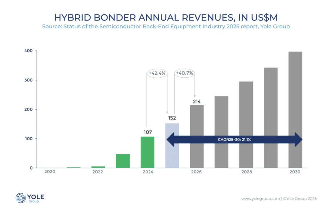 Yole Group预测,随着前端工艺控制引入封装生产线,高精度放置和更洁净的铜接口技术将成为市场增长的关键驱动力。未来,后端设备市场将继续受益于AI和高性能计算的需求增长。