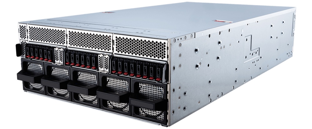 提供 20 个前置热插拔 PCIe Gen 5.0 E1.S NVMe 硬盘位、两个 M.2 2280/22110 PCIe 5.0 x2 NVMe 硬盘位