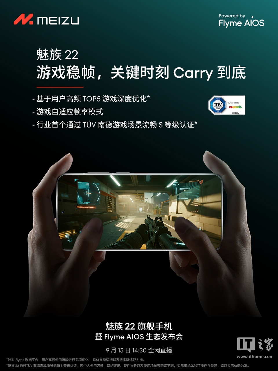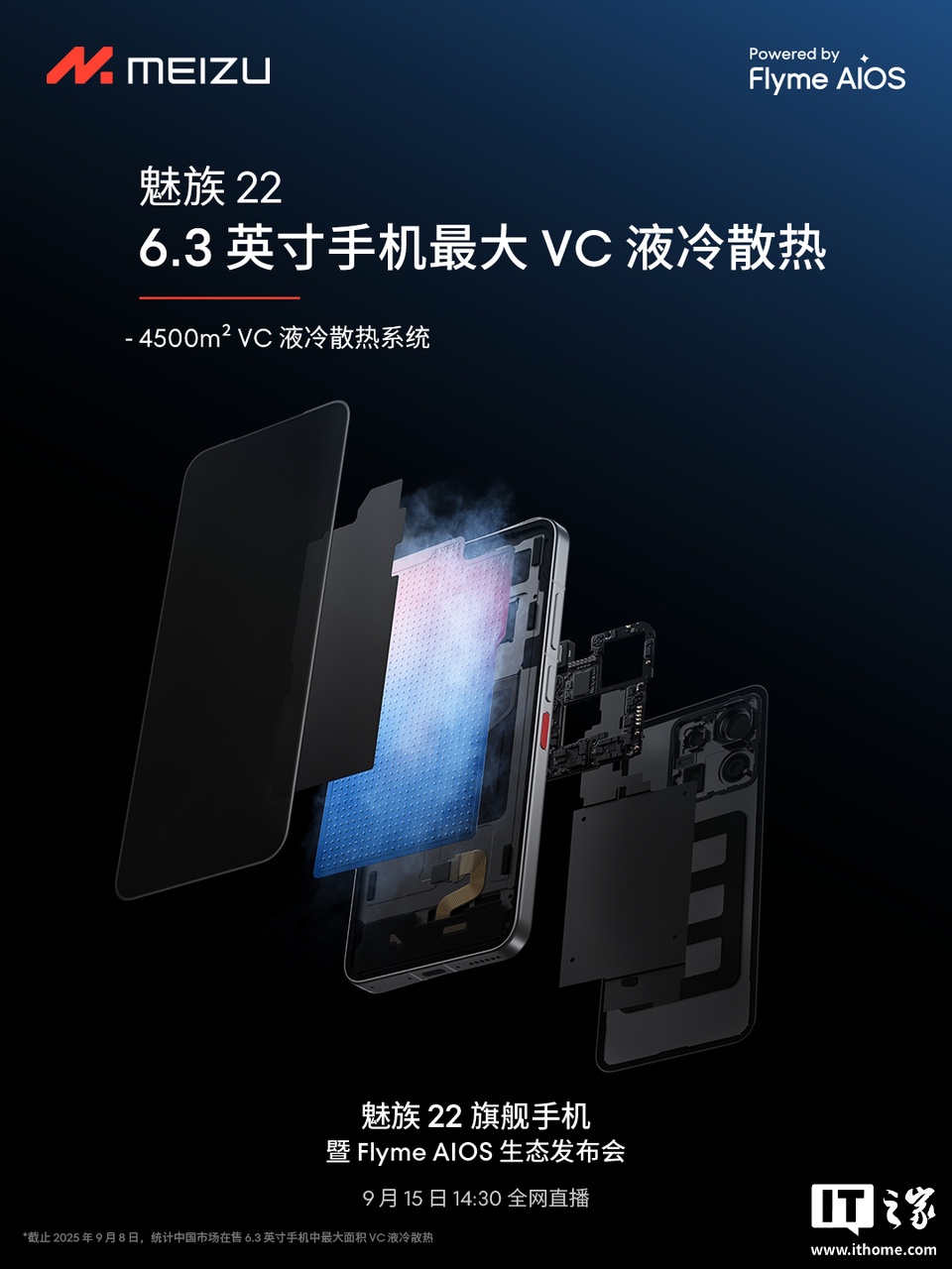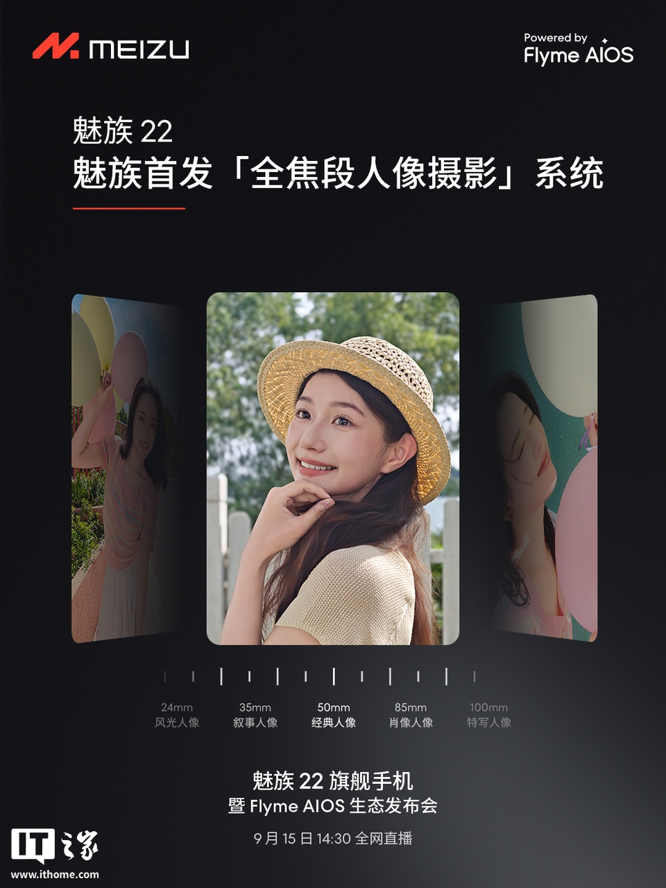IT之家 9 月 8 日消息,魅族科技官方今日宣布,魅族 22 旗舰手机暨 FlymeAIOS 生态发布会将于 9 月 15 日 14:30 在珠海・魅族科技大楼举行,届时将带来魅族 22 手机、AI 拍摄眼镜、Flyme Auto 2、PΛNDΛER 等新品。