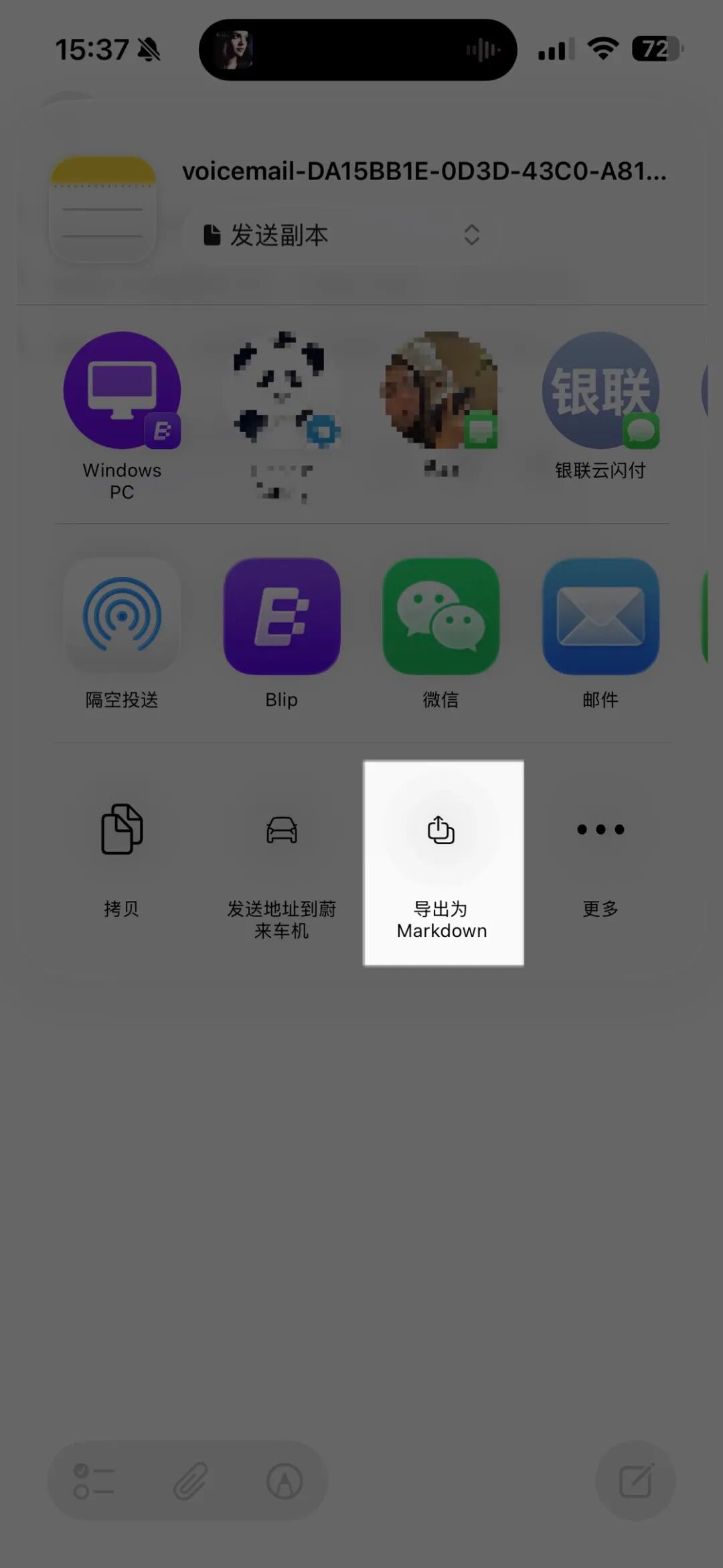 在新版本中,备忘录还新增了一个非常重要的导出选项 —— 导出为 Markdown,这对于目前热门的 LLM 工具来说也提供了一个非常便捷的临时文本储存选项。