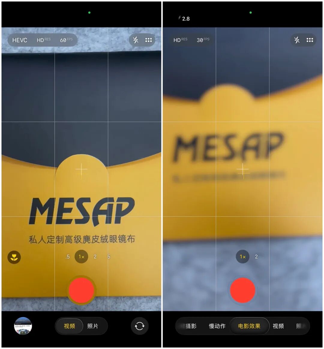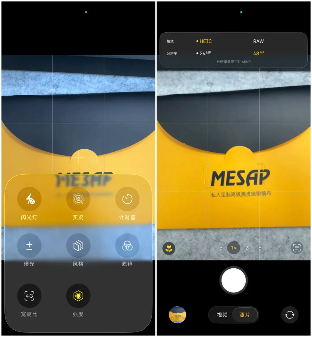拍摄功能界面则被收纳到了一个统一的界面中,我们可以通过点击相机应用右上角的按钮、向上滑动或者轻点拍摄按钮等三种方式来触发相应的功能界面。点击左上角的按钮,则可以更改分辨率、格式、帧速率等参数。