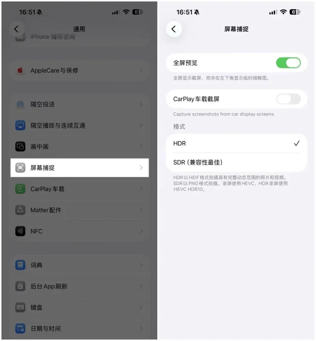 如果你使用的是 iPhone 12 及更新的 iPhone,那么在 iOS 26 上截图时会发现支持了 HDR 格式,保存的截图会保留原图的色彩层次和亮度信息。