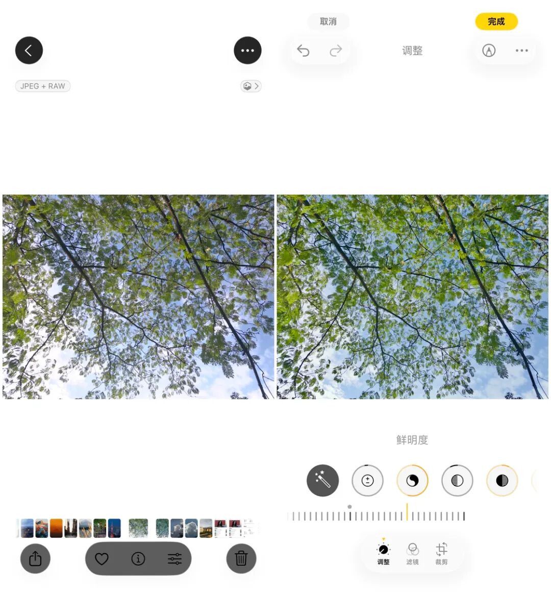 照片应用中的编辑和标注工具支持了 HDR 图片,允许用户直接在照片应用中对 HDR 图片进行亮度、对比度等参数调整以及各种自定义标注。