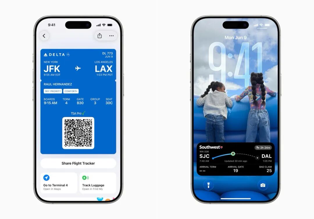 在 iOS 26 中,航班信息被添加到钱包 app 后会创建一个登机牌,同时展示更加详细的航班实时信息。