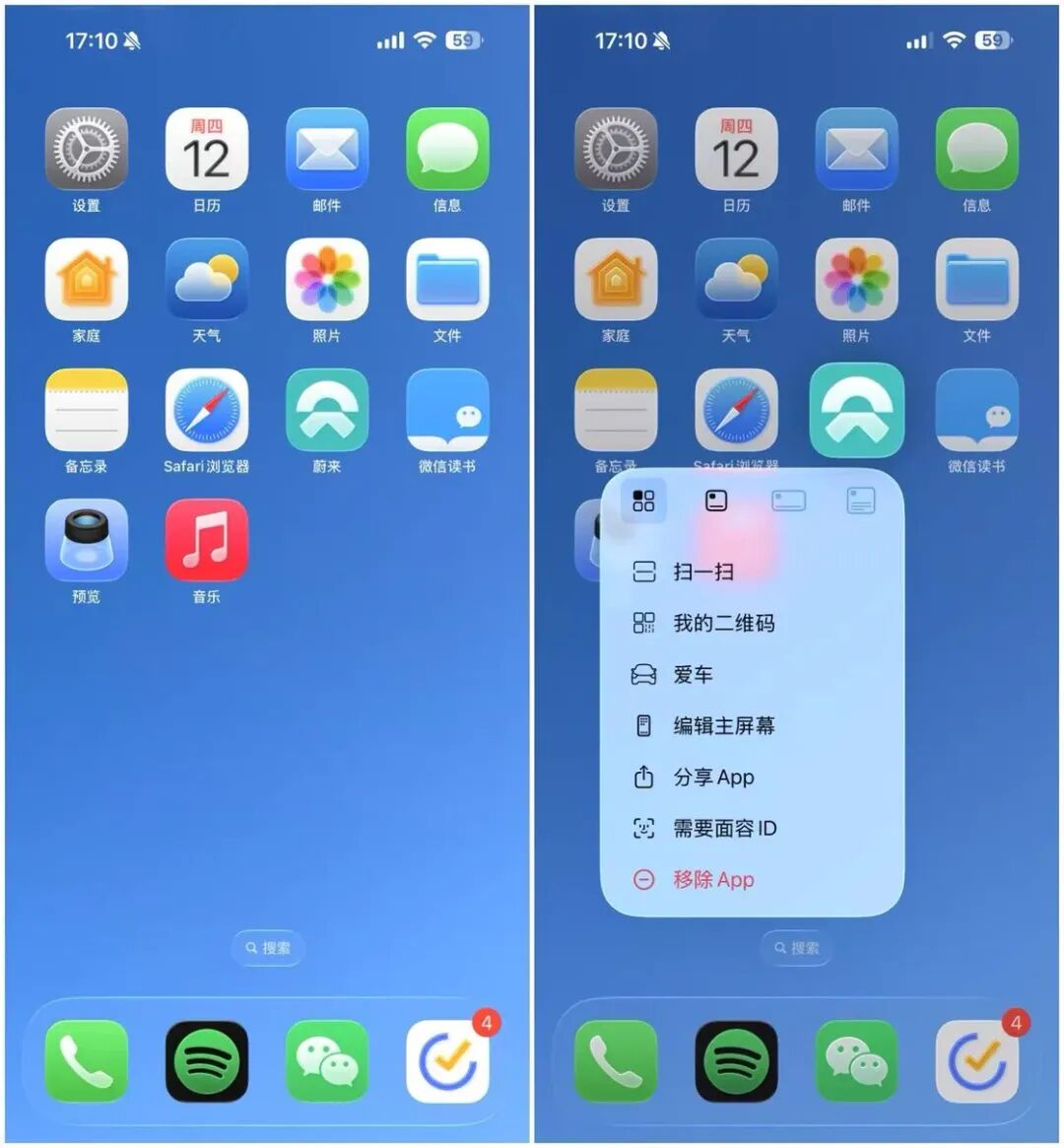 解锁后进入主屏幕,我们也可以一眼看到 Liquid Glass 在主屏幕上的应用。