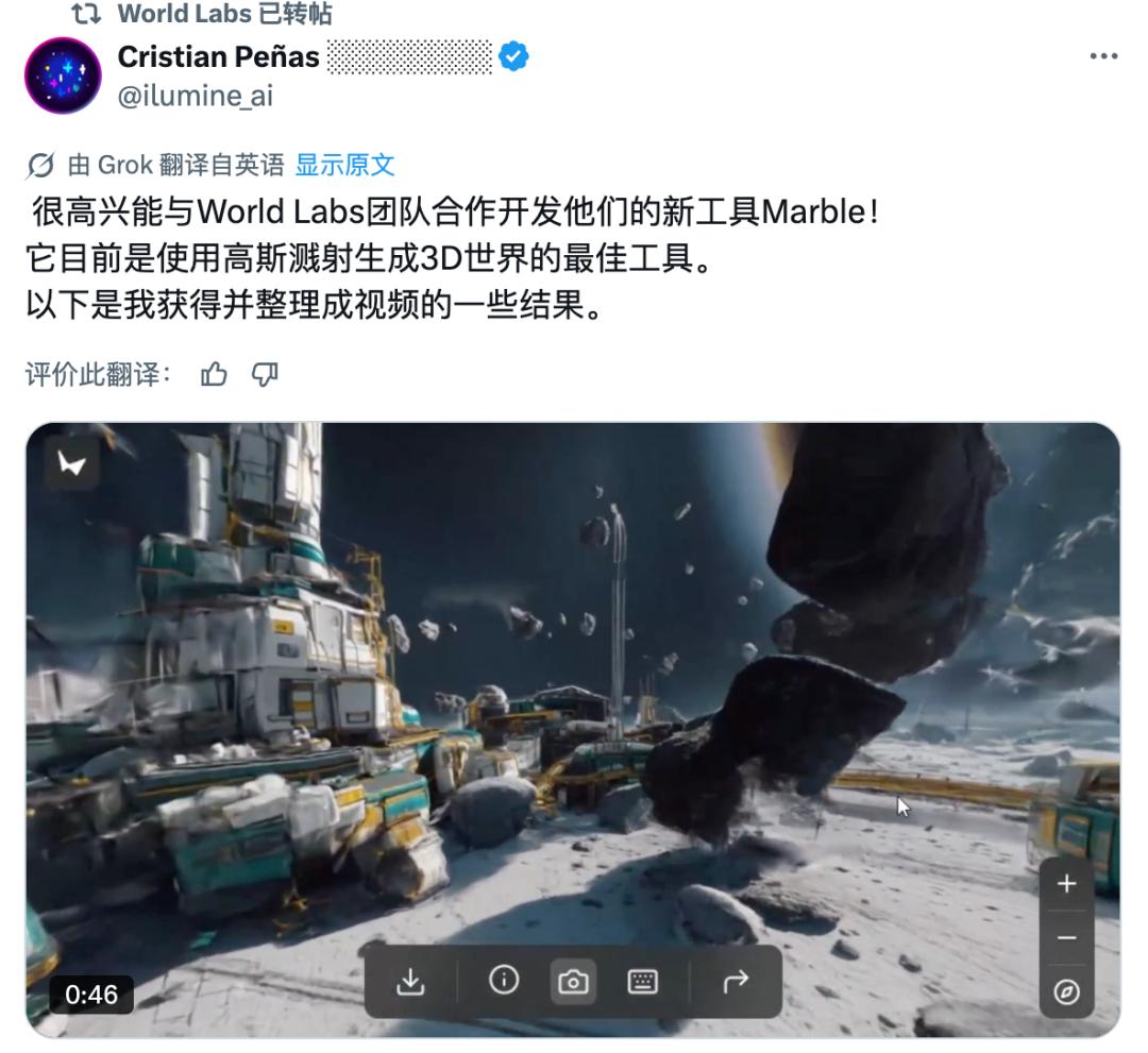 有体验过的博主 @ilumine_ai 表示:「目前它是利用 Gaussian Splatting(高斯溅射)生成 3D 世界的最佳工具。」看起来确实有两把刷子。