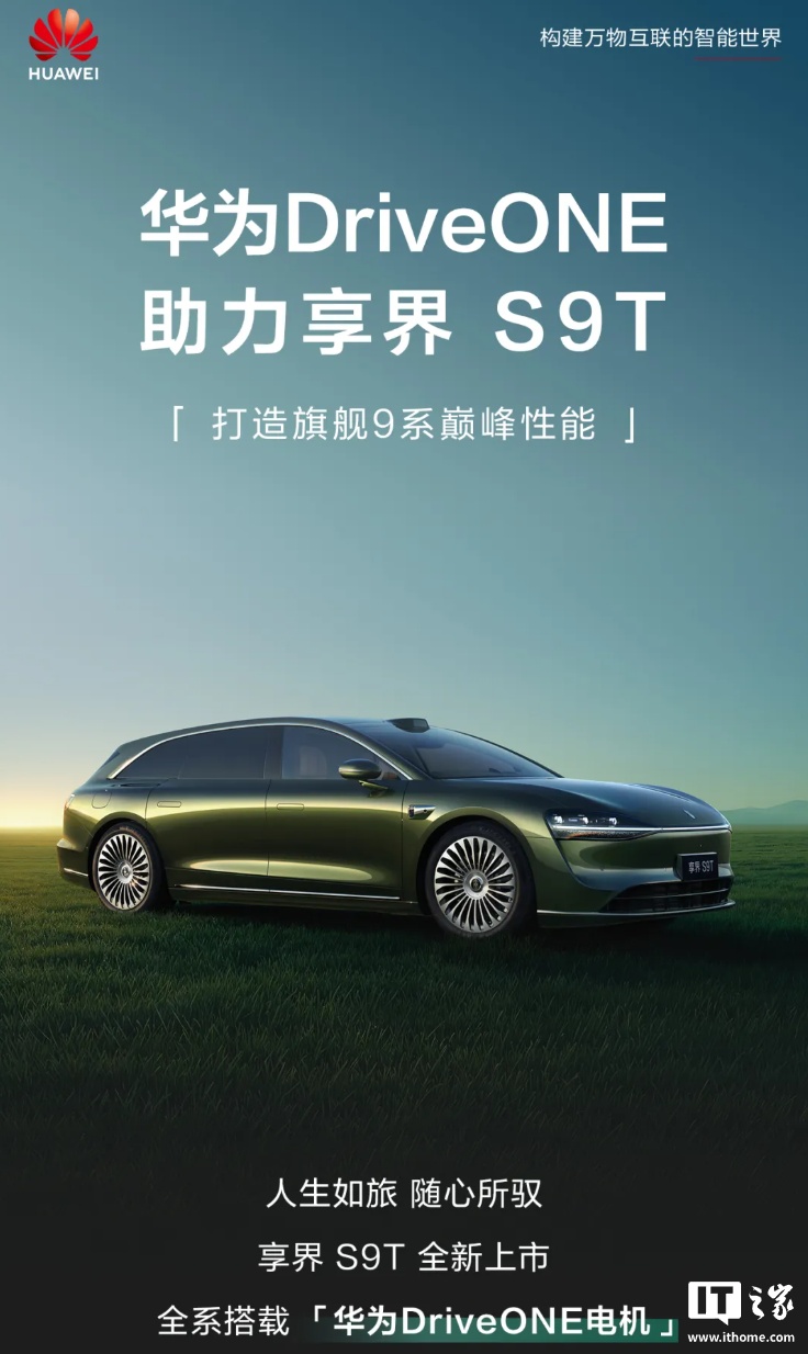 华为数字能源今日宣布,鸿蒙智行享界 S9T 汽车全系搭载华为 DriveONE 电机,号称“助力新车打造旗舰 9 系巅峰性能”。