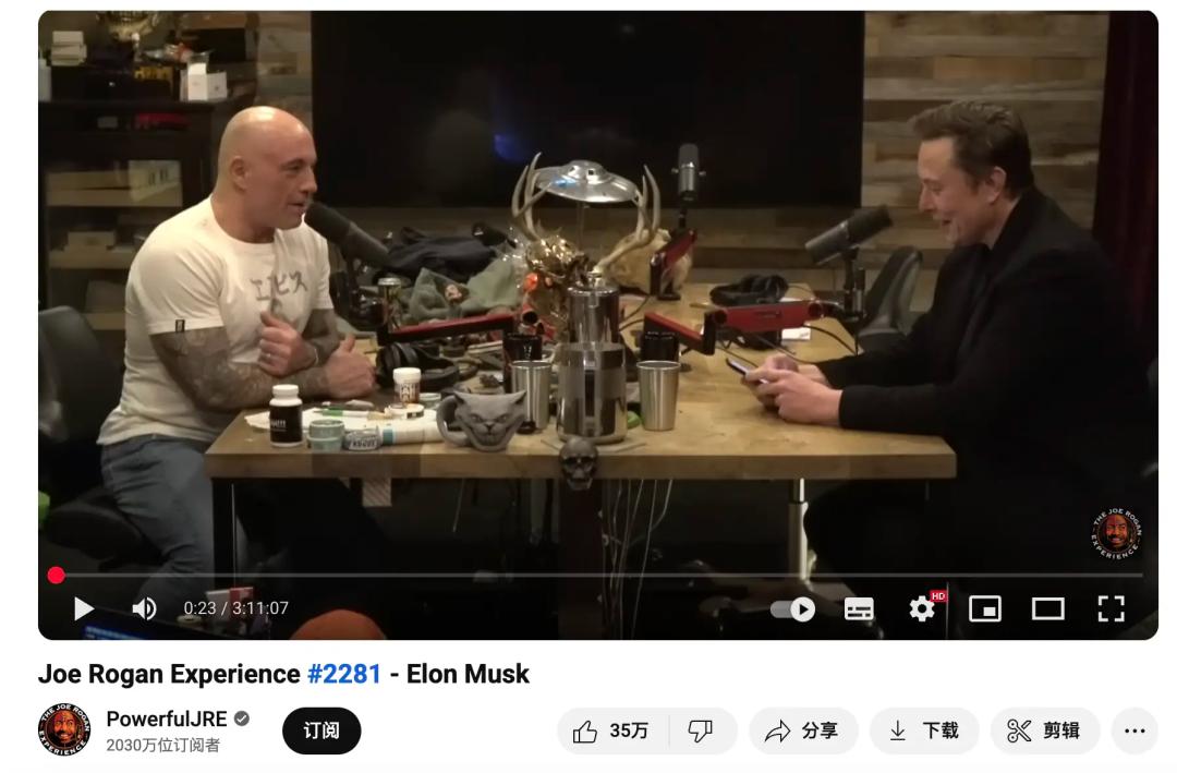 9月24日,360公司董事长周鸿祎做客罗永浩的播客节目,与其对谈AI,再次引发讨论。这些名嘴+明星嘉宾的视频播客节目,也让不少人看到了中文播客对标国际头部的可能:美国“播客之王”Joe Rogan的同名节目,访谈对象覆盖 特朗普、马斯克等全球顶流,仅在YouTube平台的订阅数就突破2000万,影响力早已超越普通播客节目的范畴。