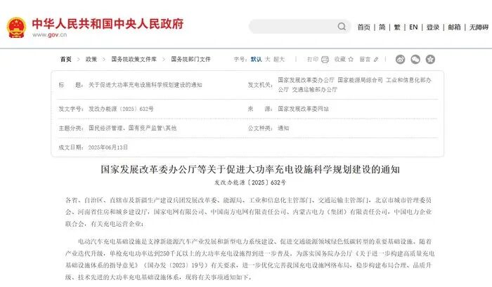 今年6月,国家发展改革委办公厅等部门联合发布了《关于促进大功率充电设施科学规划建设的通知》,这是国家部委层面第一次针对大功率充电设施出台专门文件。