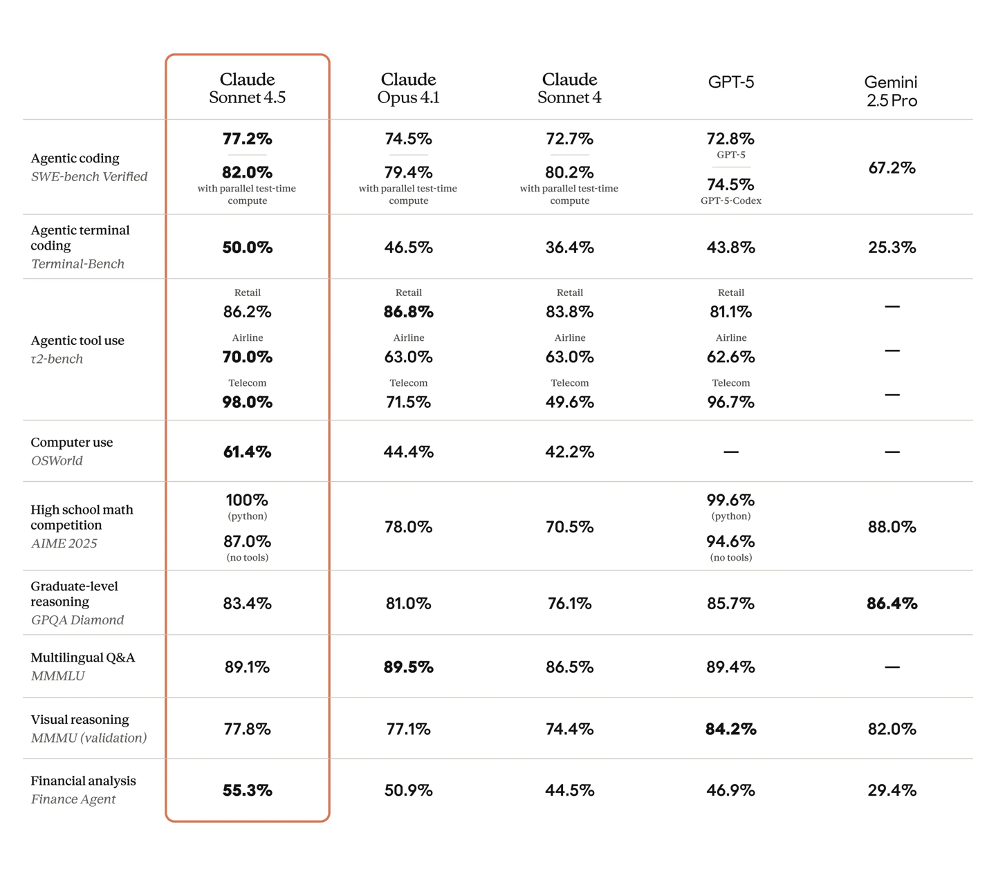 然而,随着 OpenAI 近期推出的 GPT-5 在多项编程基准测试中超越 Claude,Anthropic 在该领域的领先地位正面临严峻挑战。此次发布 Claude Sonnet 4.5,显示了其巩固市场优势、直面竞争的决心。