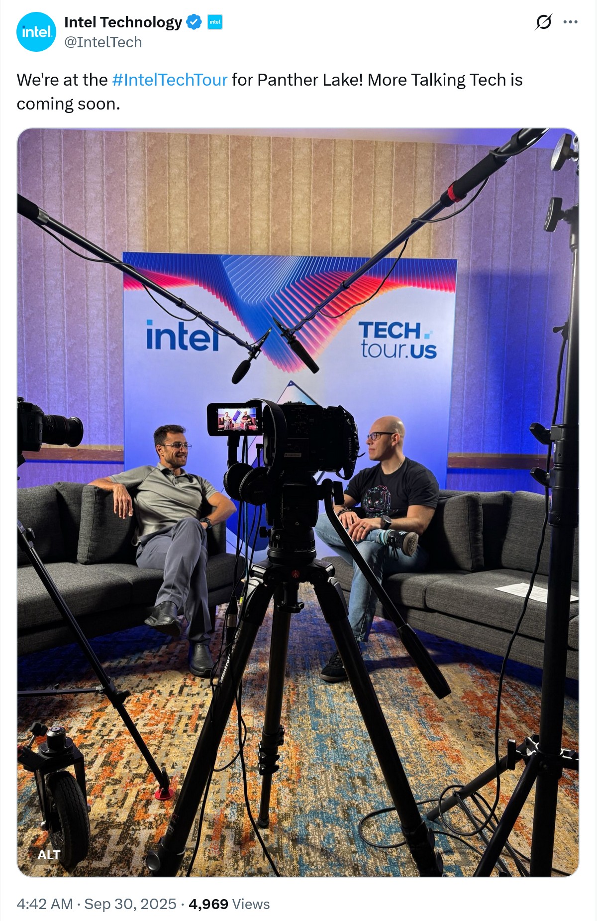 IT之家 9 月 30 日消息,英特尔官方 X 平台社交媒体账户 Intel Technology 今日发表动态,确认目前举行的技术之旅 (Tech Tour) 涉及 "Panther Lake" 处理器,更多的 Talking Tech 即将到来。