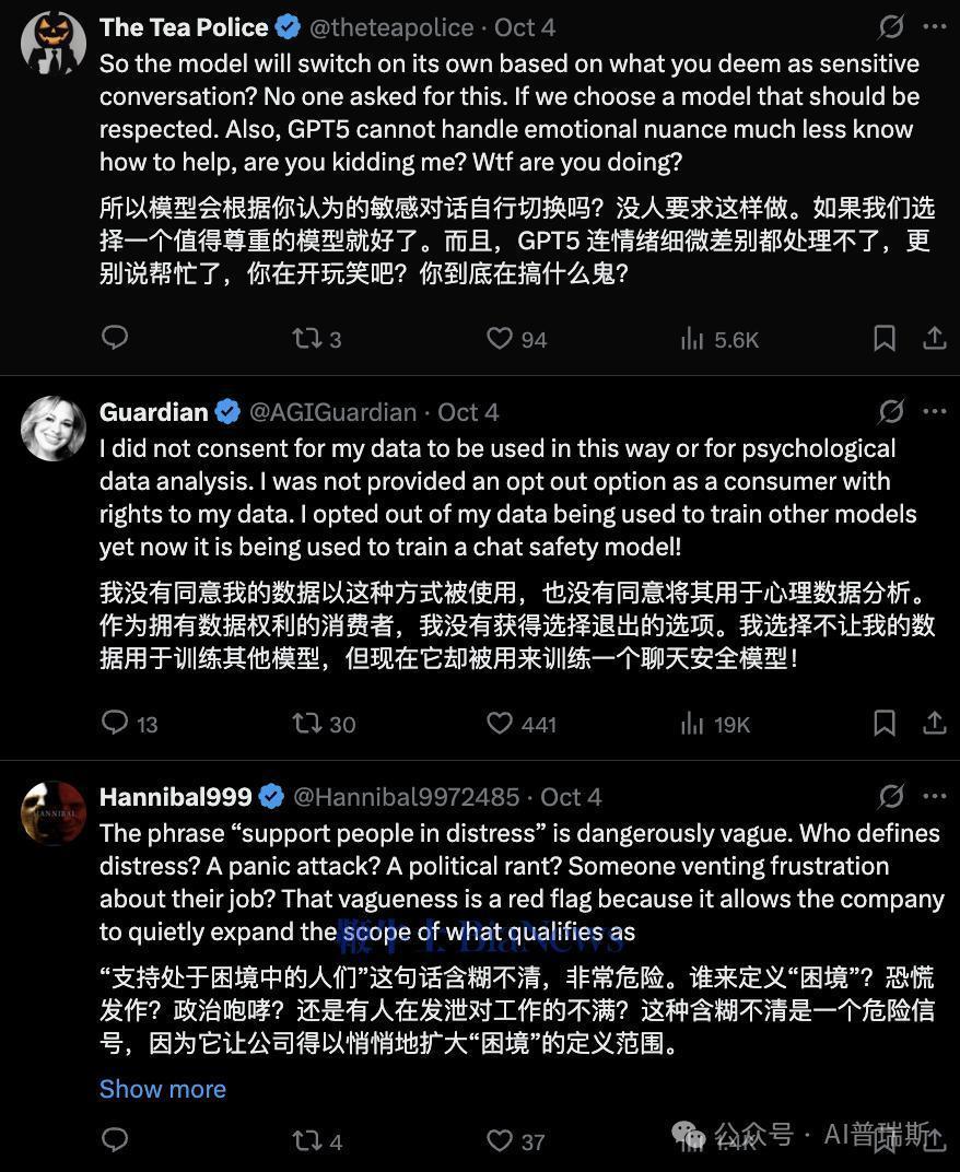 “这不是我们付费买的产品!你们未经允许就在做心理分析?我拒绝让我的数据被用来训练所谓的‘安全模型’!”