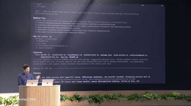 最后,Romain还用Codex SDK拍了一张全体照片,实现了一个「电影式结尾」——演职员表,将现场所有参会者的名字动态呈现。