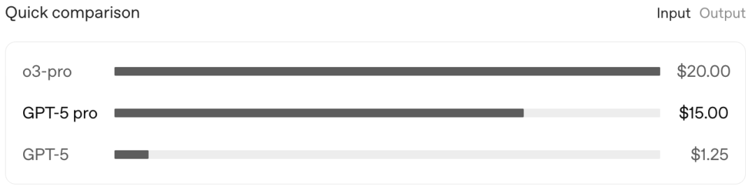 GPT-5 Pro输入价格是GPT-5 15倍,输出价格是GPT-5 12倍。