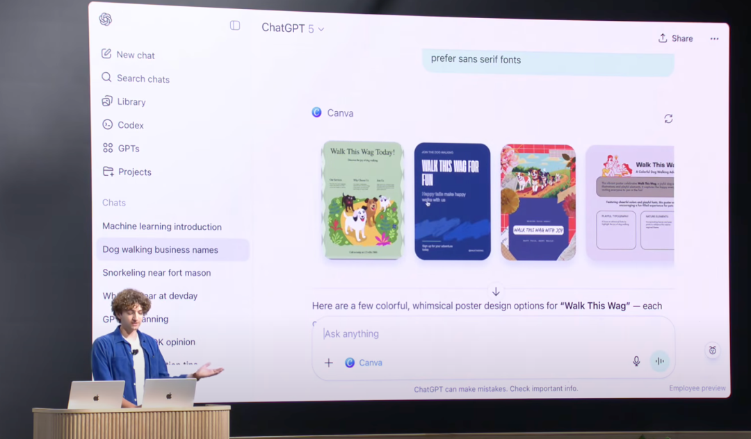 可以直接在ChatGPT中要求「Canva」制作海报,而不需要额外跳转。