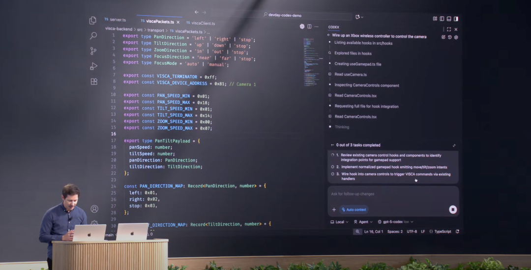 通过Codex IDE扩展发送指令,Codex便会迅速制定计划、分析文件,自动识别Xbox的输入逻辑,并将摇杆映射为控制的最佳方式。