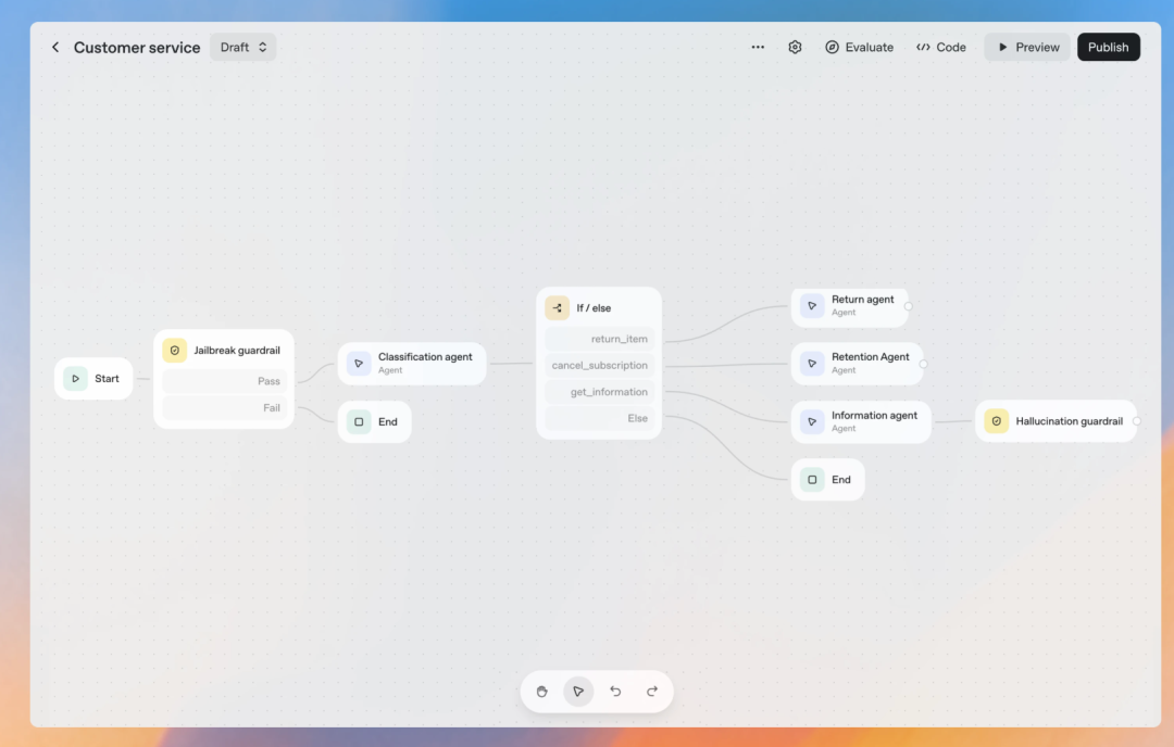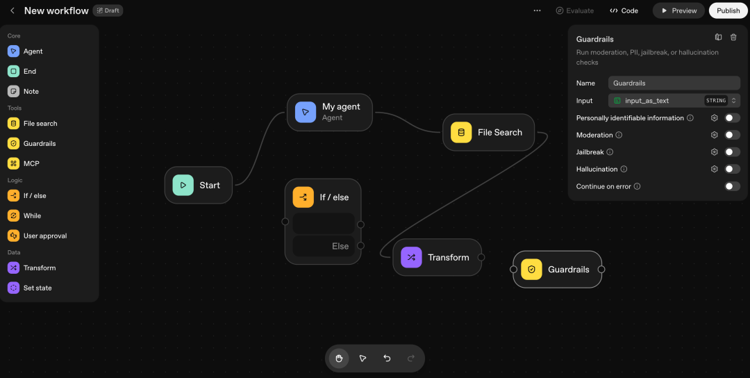 AgentKit:无需编码,拖放搭建智能体。人人都可快速开发智能体,还能评估智能体能力;