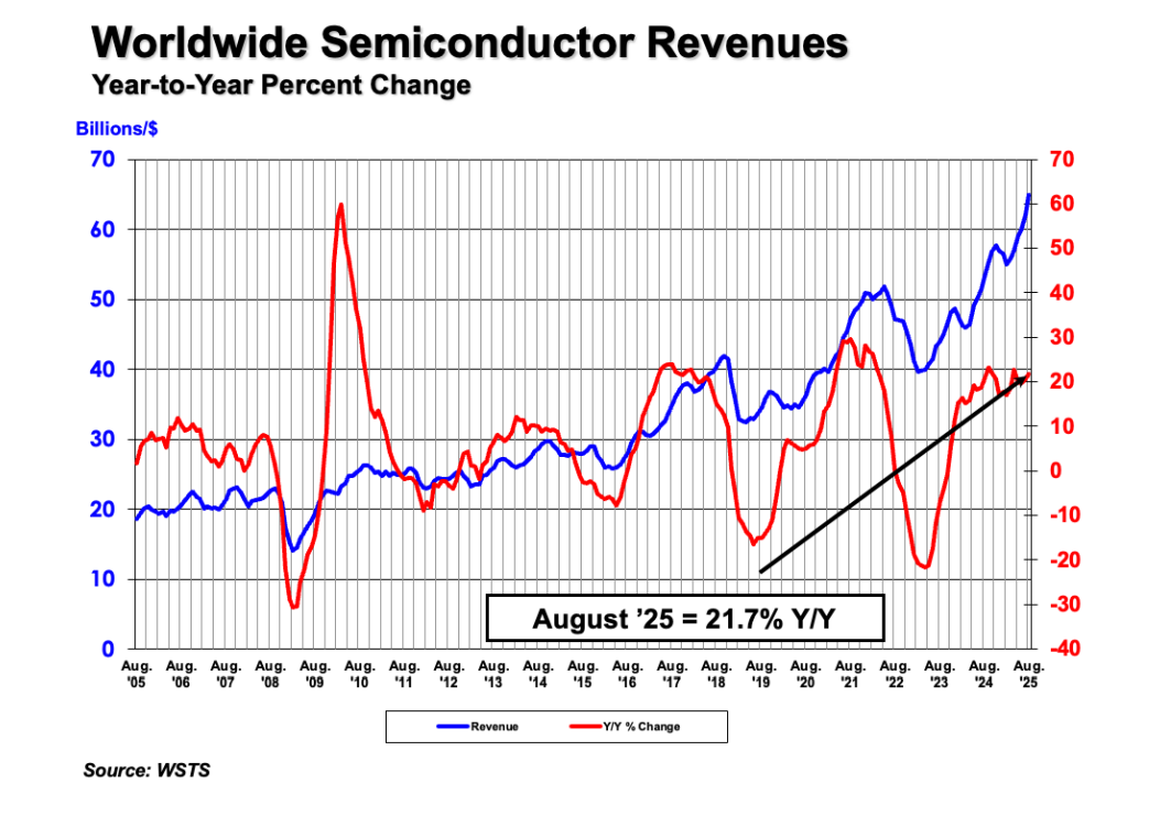 4.机构:8月全球半导体销售额同比增长21.7%,中国增长12.4%