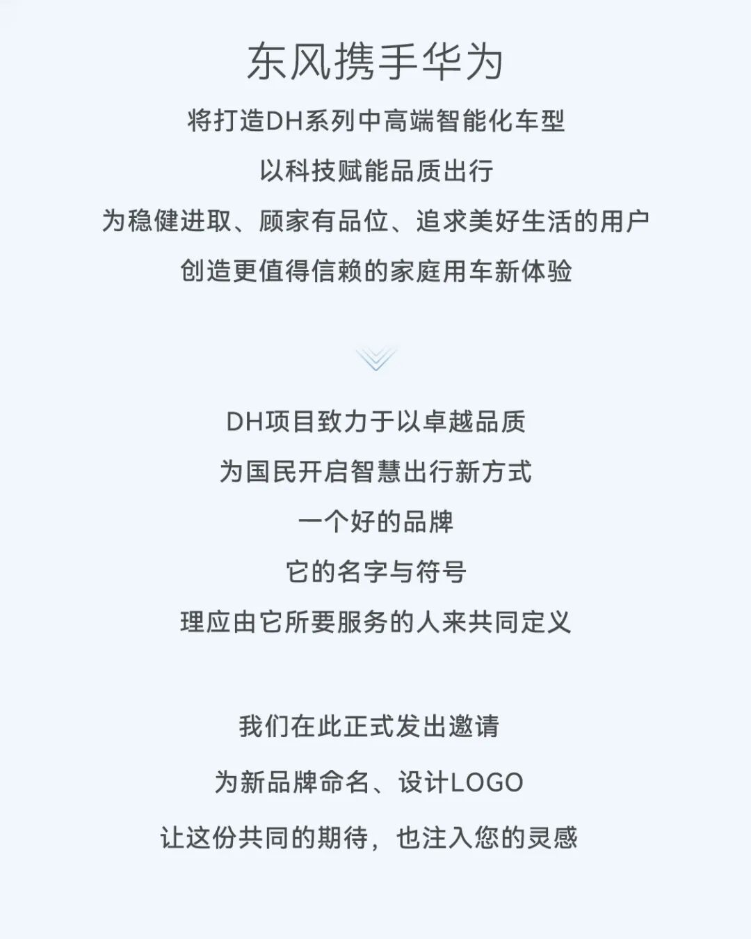 IT之家 10 月 9 日消息,今天下午,东风奕派公众号发文宣布:向网友发出邀请,为东风、华为打造的 DH 项目征集中文名和 LOGO。