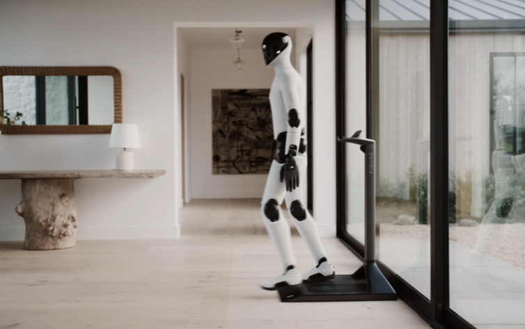 机器人脚底内置感应线圈,可通过无线底座以2kW功率充电。在家中,它能自动回到充电位置,自主补能并上传数据。