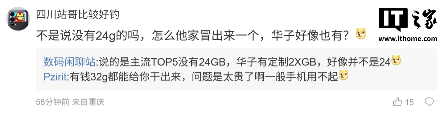 后续有用户在评论区询问:“不是说没有 24g 的吗,怎么他家冒出来一个,华子好像也有?