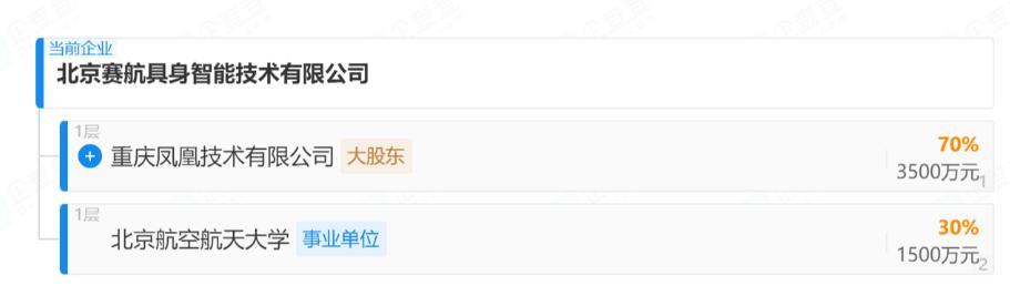 而且重庆凤凰成立不过半月,还携手北京航空航天大学,合资成立了北京赛航具身智能技术有限公司,专注于智能机器人的研发与销售,赛力斯通过重庆凤凰持股70%。