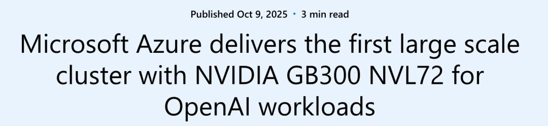 https://x.com/Azure/status/1976319720472138045 https://azure.microsoft.com/en-us/blog/microsoft-azure-delivers-the-first-large-scale-cluster-with-nvidia-gb300-nvl72-for-openai-workloads/