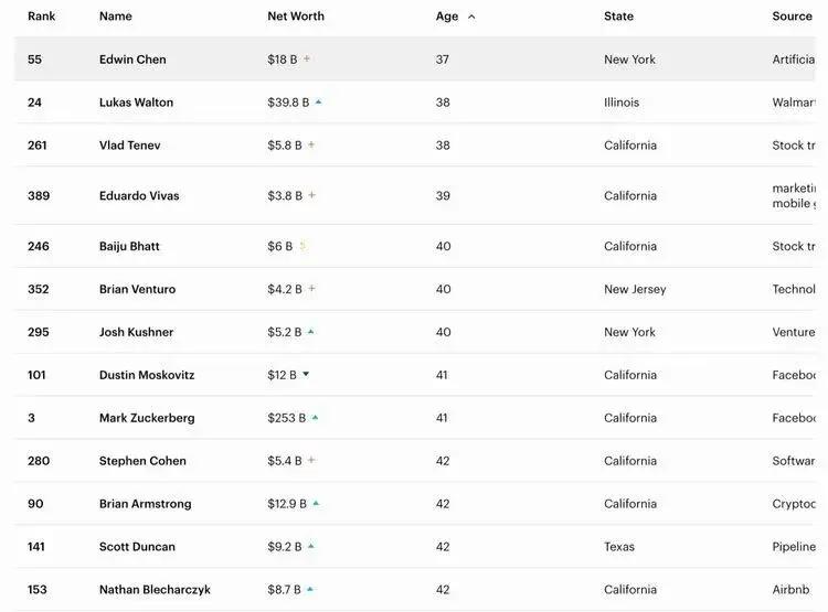 《福布斯》的新榜单出炉,今年美国最年轻的亿万富翁(10亿+美元),是一位37岁的华裔,名叫Edwin Chen,他的最新身价达到180亿美元(约1281亿人民币)。