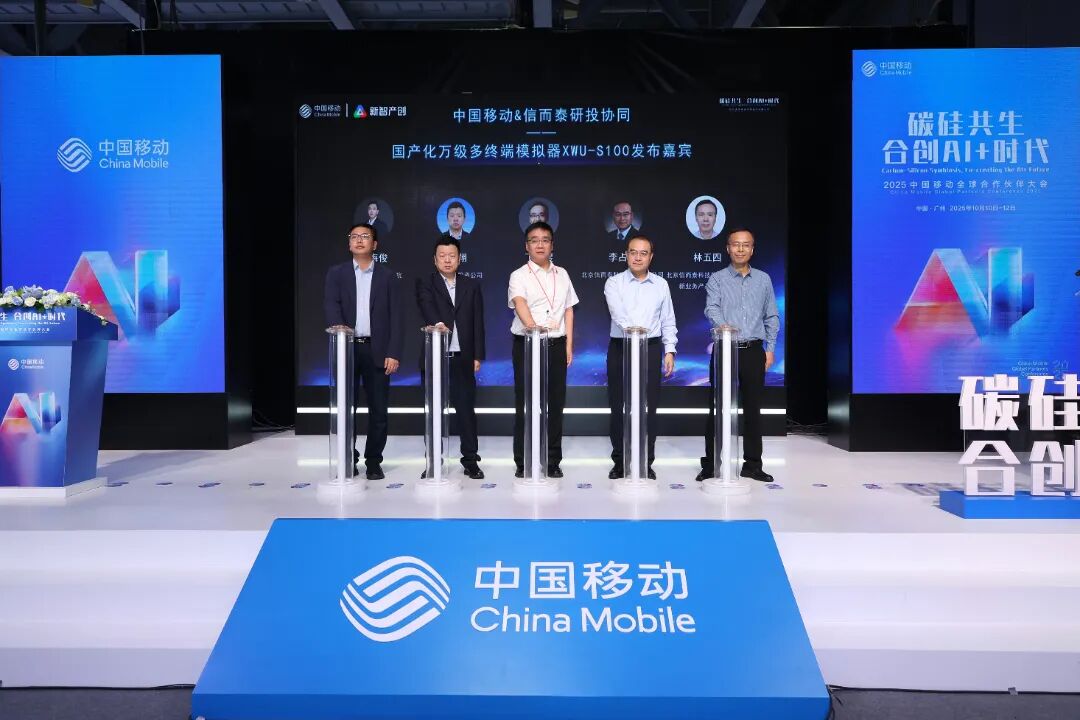 2025年10月12日,在中国移动全球合作伙伴大会上,北京信而泰科技股份有限公司(以下简称“信而泰”)与中国移动通信有限公司研究院联合举办了国产化万级多终端模拟器XWU-S100的发布仪式。这一重要产品的推出,标志着我国在高端通信测试仪表领域自主创新能力迈上新台阶,为信息通信产业链安全可控提供了有力支撑。