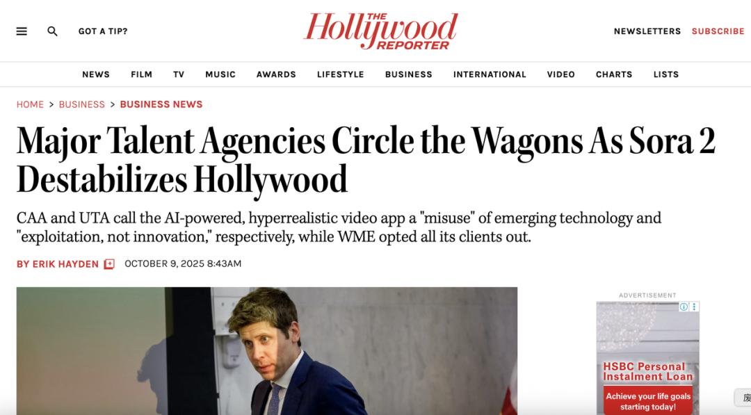 △ 好莱坞几大经纪公司纷纷抵制Sora 2