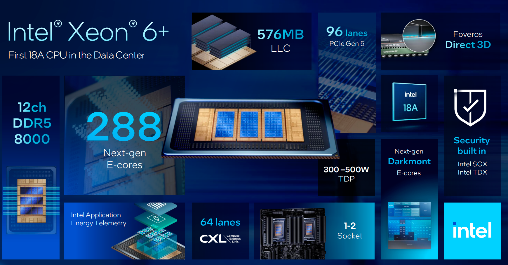 至强6+(Clearwater Forest)的推出,既是英特尔在先进制程与架构创新上的集大成之作,也是其对数据中心市场和客户需求的精准回应。从18A制程的RibbonFET与PowerVia技术突破,到Darkmont E核17%的IPC提升、288核的密度飞跃,再到Foveros Direct 3D封装,每一项技术都直指 “高性能与高能效的平衡” 这一核心命题。