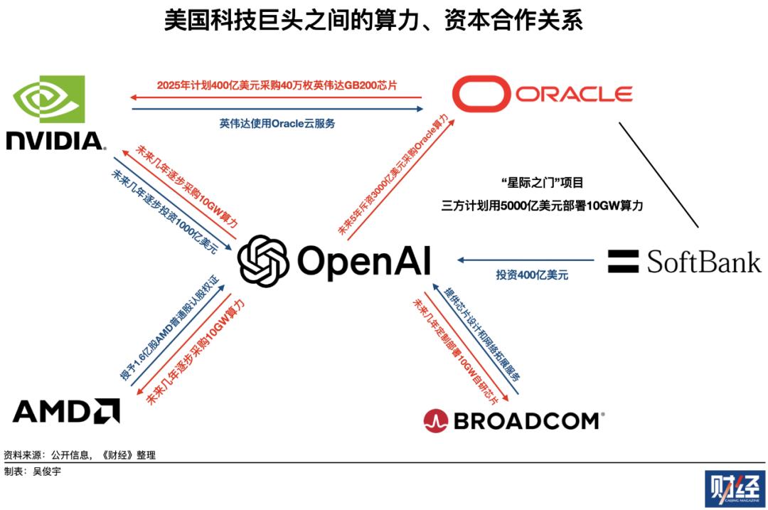 近一个月,随着OpenAI和英伟达、AMD、博通,乃至Oracle、日本软银的合作计划持续推进,美国科技巨头之间正在形成错综复杂的算力和资本合作关系。