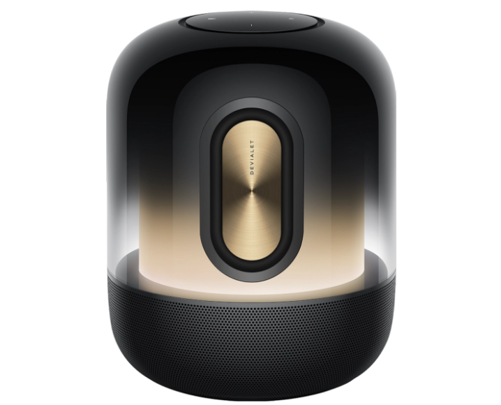 而音箱方面,华为 Sound X 系列智能音箱也采用了类似的上半部分透明 + 下半部分底座设计。
