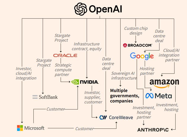 图:多家大型科技公司正将自身命运与OpenAI深度绑定