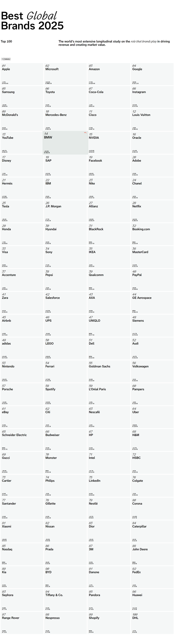 快科技10月16日消息,品牌咨询公司Interbrand发布来了2025年度全球最佳品牌排行榜。