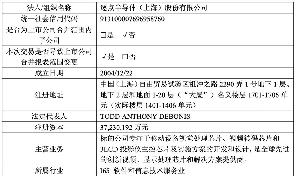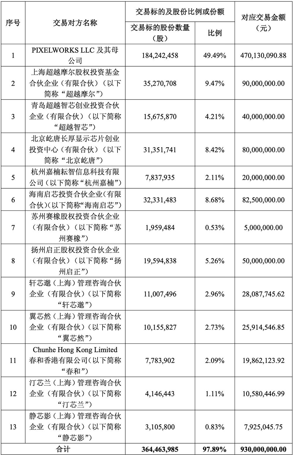10月15日,天遂芯愿与PIXELWORKS LLC、Pixelworks, Inc、超越摩尔、超越智芯、北京屹唐、杭州嘉楠、海南启芯、苏州赛橡、扬州启正、轩芯邈、翼芯然、春和、汀芯兰、 静芯影和逐点半导体等相关方签署《股份购买协议》,约定以9.3亿元现金加上交易费用等相关费用收购逐点半导体97.89%股份。
