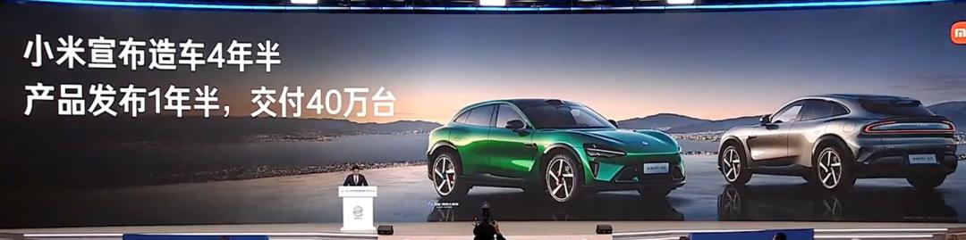 在一众单独发言的嘉宾中,雷总最后压轴登场。登场第一张PPT,就是介绍小米汽车累计交付了40万台车。