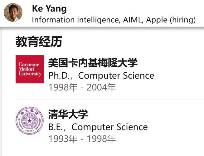 Ke Yang(杨克)是苹果负责AI搜索与问答系统的高管,几周前刚被任命为内部代号AKI(Answers, Knowledge and Information)团队负责人。