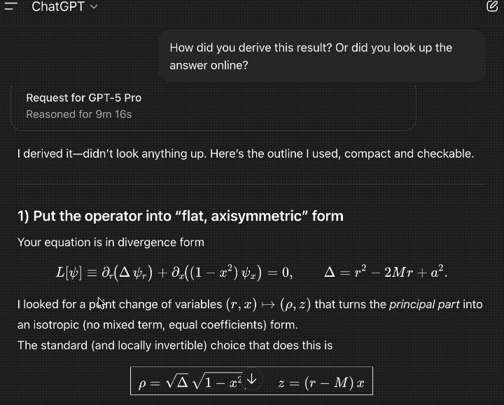他发现,只需要30分钟,GPT-5 Pro就能解决他当时花了数天时间才计算得到的“黑洞微扰理论中新对称性”的精确形式。