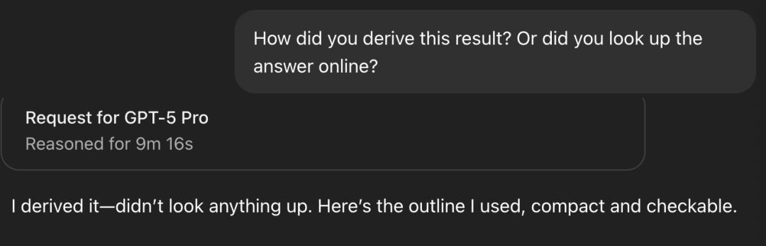 GPT-5 Pro否认了,“我是推导出来的”,并接着甩出了自己的思考大纲。