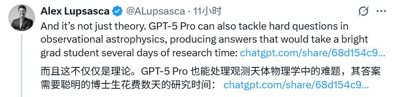 并且,GPT-5 Pro 的能力不仅限于理论推导。Lupsasca 还发现,它同样能处理观测天体物理学中的难题,生成的答案质量堪比一名优秀的研究生花费数天时间进行研究所得出的结论。