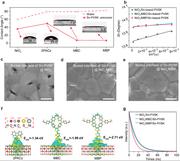 面对这一挑战,团队独辟蹊径,提出了一种巧妙的“双层空穴传输层”结构。该结构以稳定性优异的氧化镍为底层基底,并在其上构筑一层自组装单分子层(SAM),从而形成均一且功能协同的复合功能层。“氧化镍与钙钛矿直接接触,表面的氧空位会引起锡基钙钛矿的分解,自组装的分子层能够分隔开它们。”梁佳解释。