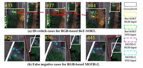 该方法通过光谱空间联合建模和引入目标旋转角度状态参数,显著提升光谱信息表达能力,实现了精准的多光谱小目标检测和目标间关联,降低了误检、漏检及ID转换次数,如图2所示。