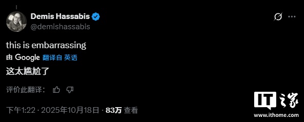 IT之家 10 月 19 日消息,近日,OpenAI 研究人员在社交媒体平台 X 上宣称取得了一项重大数学突破,但很快在学界批评声中撤回了这一说法。批评者包括 DeepMind 首席执行官德米斯・哈萨比斯(Demis Hassabis),他指出该团队的沟通方式“过于草率”。