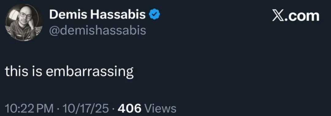 谷歌 DeepMind 的 CEO Demis Hassabis 在 Sebastien Bubeck 那条「AI 加速科学」的推文下回复:这很尴尬。
