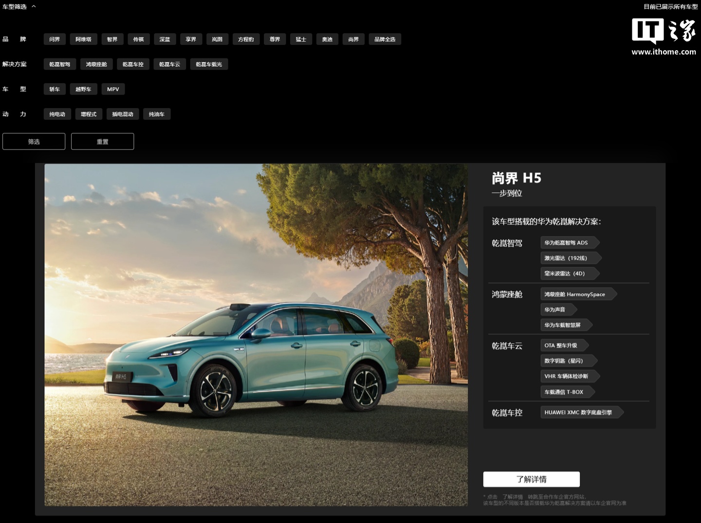 华为乾崑智能汽车解决方案官网显示,目前其合作品牌有问界、阿维塔、智界、传祺、深蓝、享界、岚图、方程豹、尊界、猛士、奥迪、尚界等。其解决方案包括:乾崑智驾、鸿蒙座舱、乾崑车控、乾崑车云、乾崑车载光。